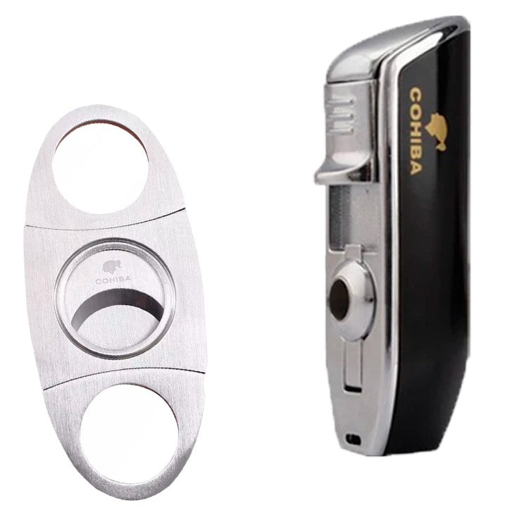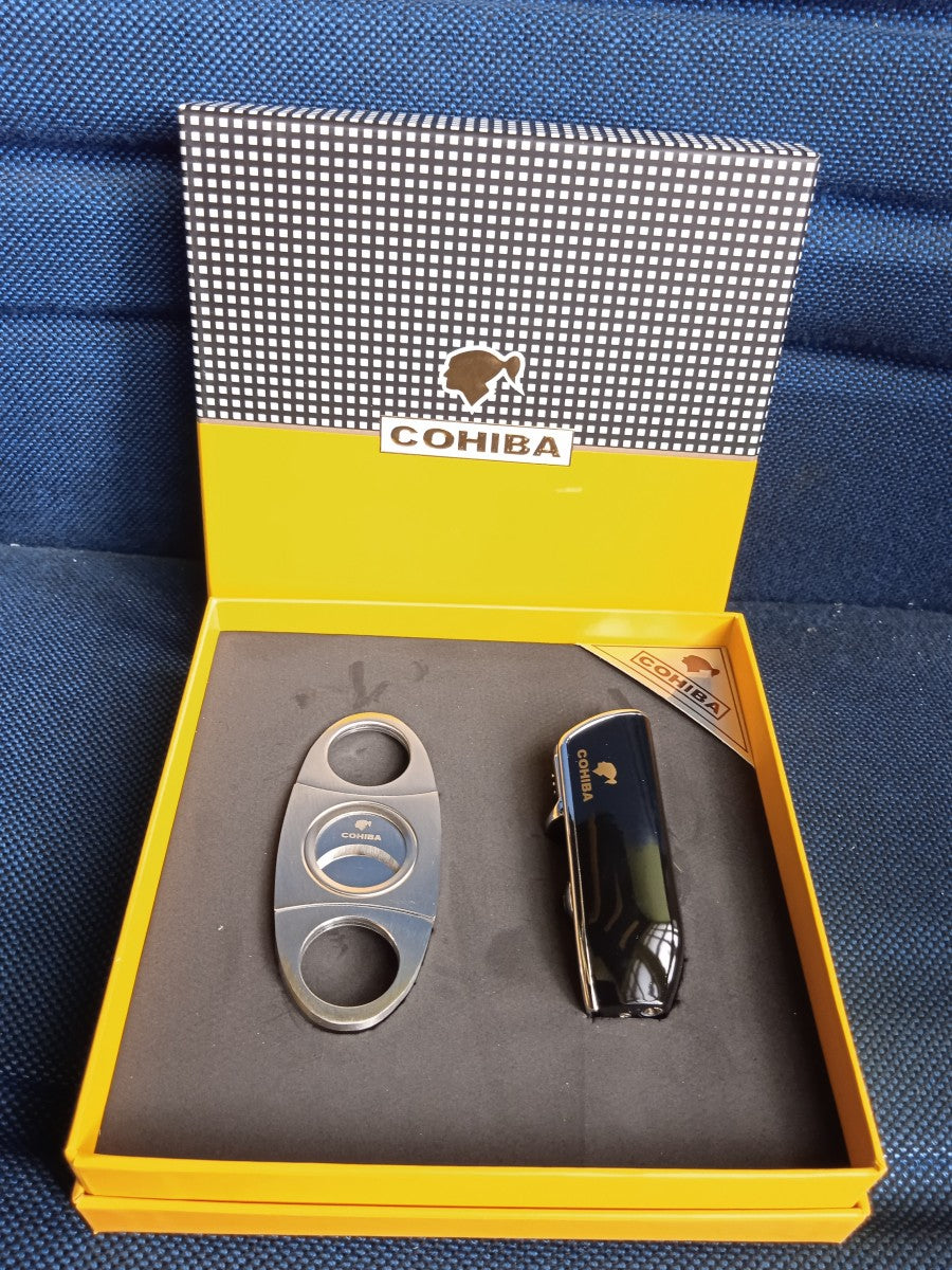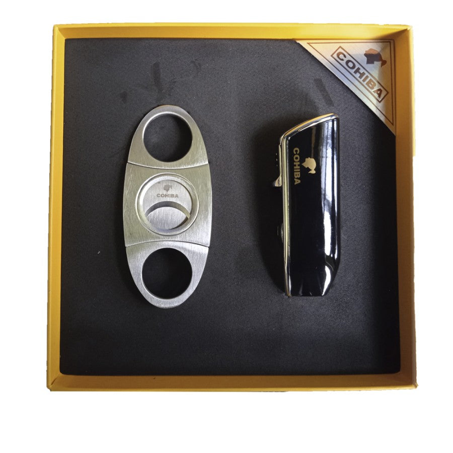 Lighter Cutter Korek Pemotong Cigar Cerutu COHIBA Hitam Gift Box SetPremium Box SetTERDIRI DARI1. Lighter Korek Gas Cigar Cerutu2. Cutter Pemotong Cigar Cerutu